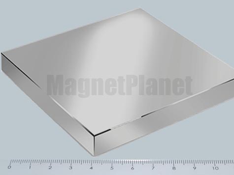 * SZUPERMÁGNES * 100x100x10 mm-es NEODYM mágnes hasáb, nikkel (NiCuNi) bevonattal.