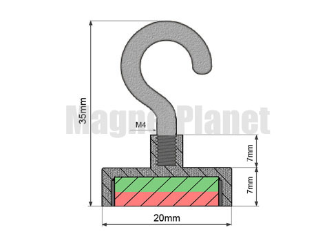 H-20x7 mm NEODYM csavaros mágnes kampó