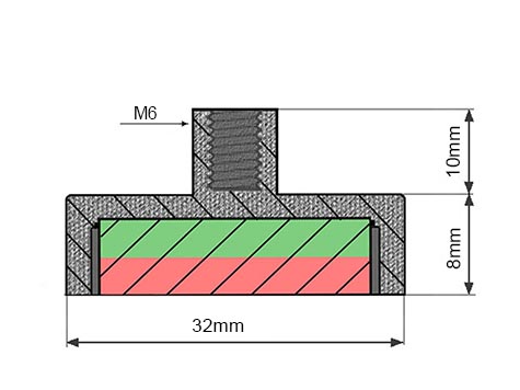 POT-B-32-8 - AdatlapNEODYM Mágnesek | Mágneses rögzitéstechnika | POT mágnesek menetes hüvellyel |